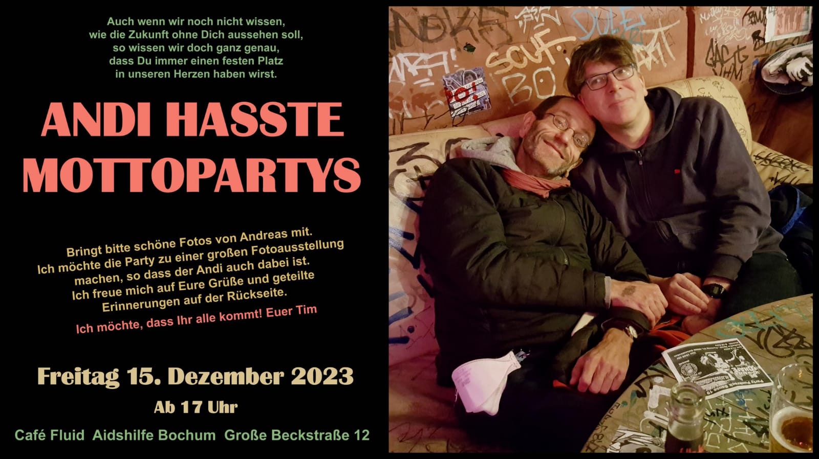 Der Andi ist nun gestorben, und irgendwie ist mir gar nicht nach Weihnachten zumute. Dennoch möchte ich Euch alle in der Tradition der Weihnachtspartys sehen, und mit Euch die Erinnerungen an Andi teilen.